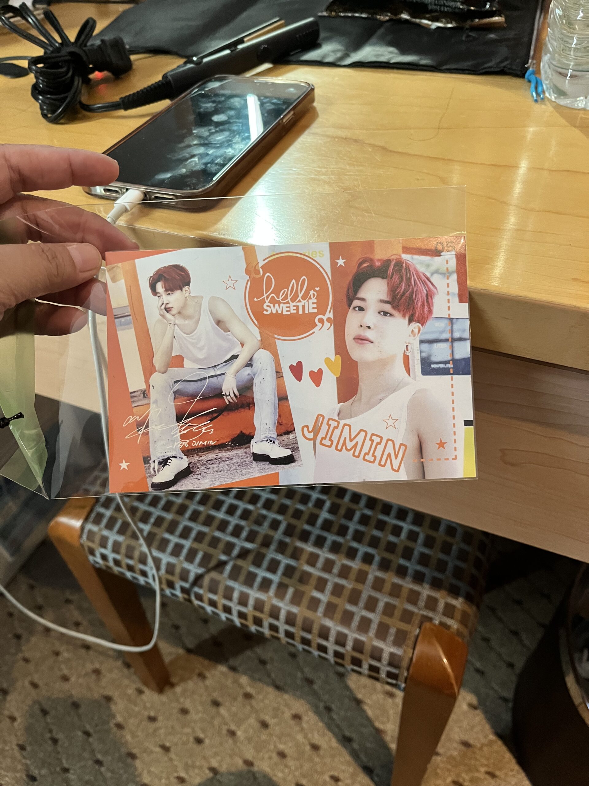 Stepping inside felt like opening a page of Jimin’s own blog, a world glimpsed through his hands and perspective. The owner welcomed me with warmth and patience, guiding me through every step as I shaped my own piece of silver. He even gave me Jimin’s apron and invited me to sit in the same spot he had. I crafted the exact same bracelet, a small but tangible connection to his world. The experience was unforgettable and fun, and I was happy with my bracelet. The package also included a photo of Jimin, a postcard, and other cute freebie stickers, which made the visit even more special.
