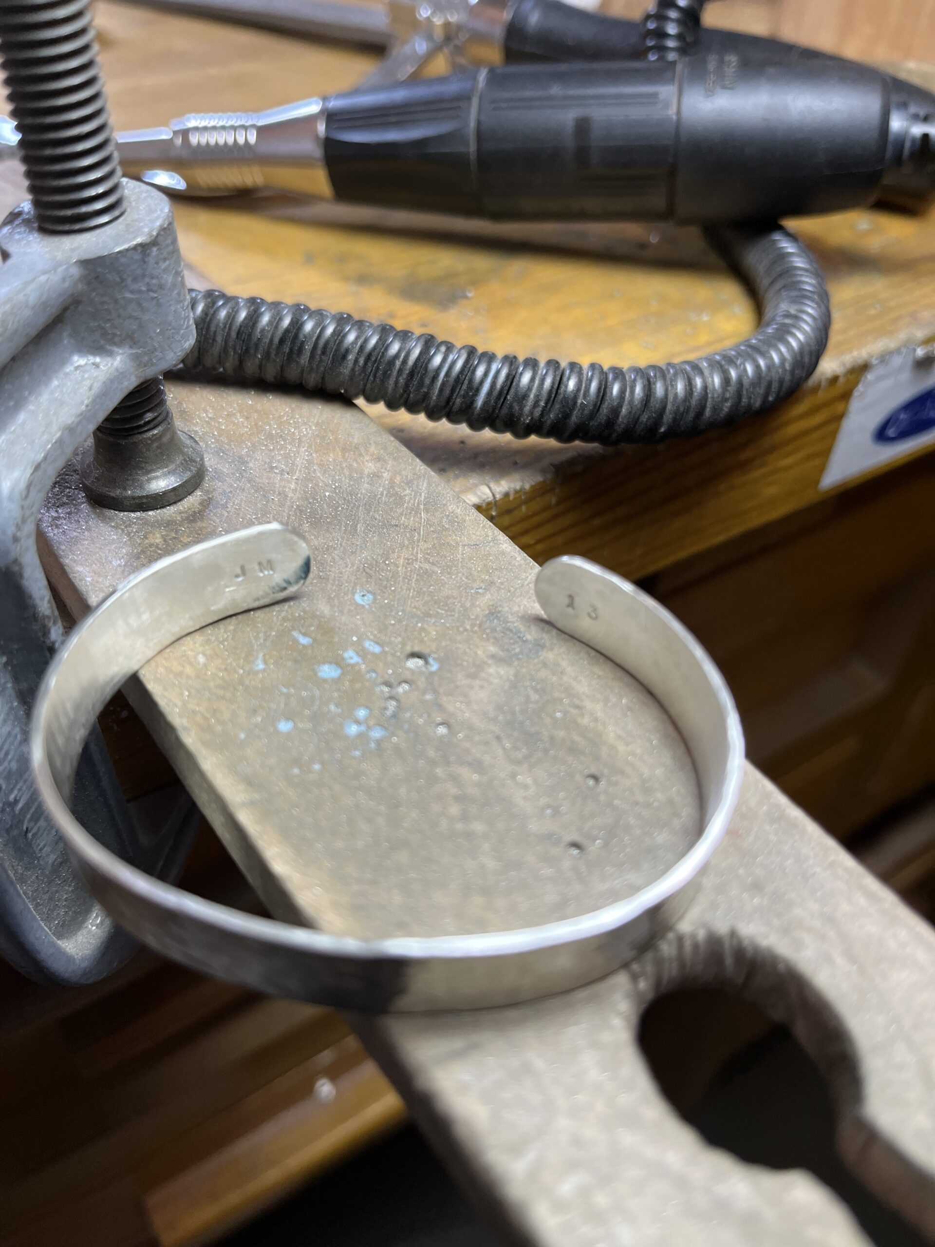 On my first trip to Korea, I had scheduled an appointment at Silver Kit Shop, the very place where Jimin learned to make his silver bracelet or maybe he did, since the shop is so close to HYBE Yongsan. I had booked it months in advance from the U.S. via Instagram, as appointments are required. There were about 12 of us in the class, all there for the same experience. The shop is just a few steps from a Paris Baguette, where I waited a few minutes before my scheduled time. The walk up a slight incline to the shop added a small, ordinary rhythm to an otherwise extraordinary experience.