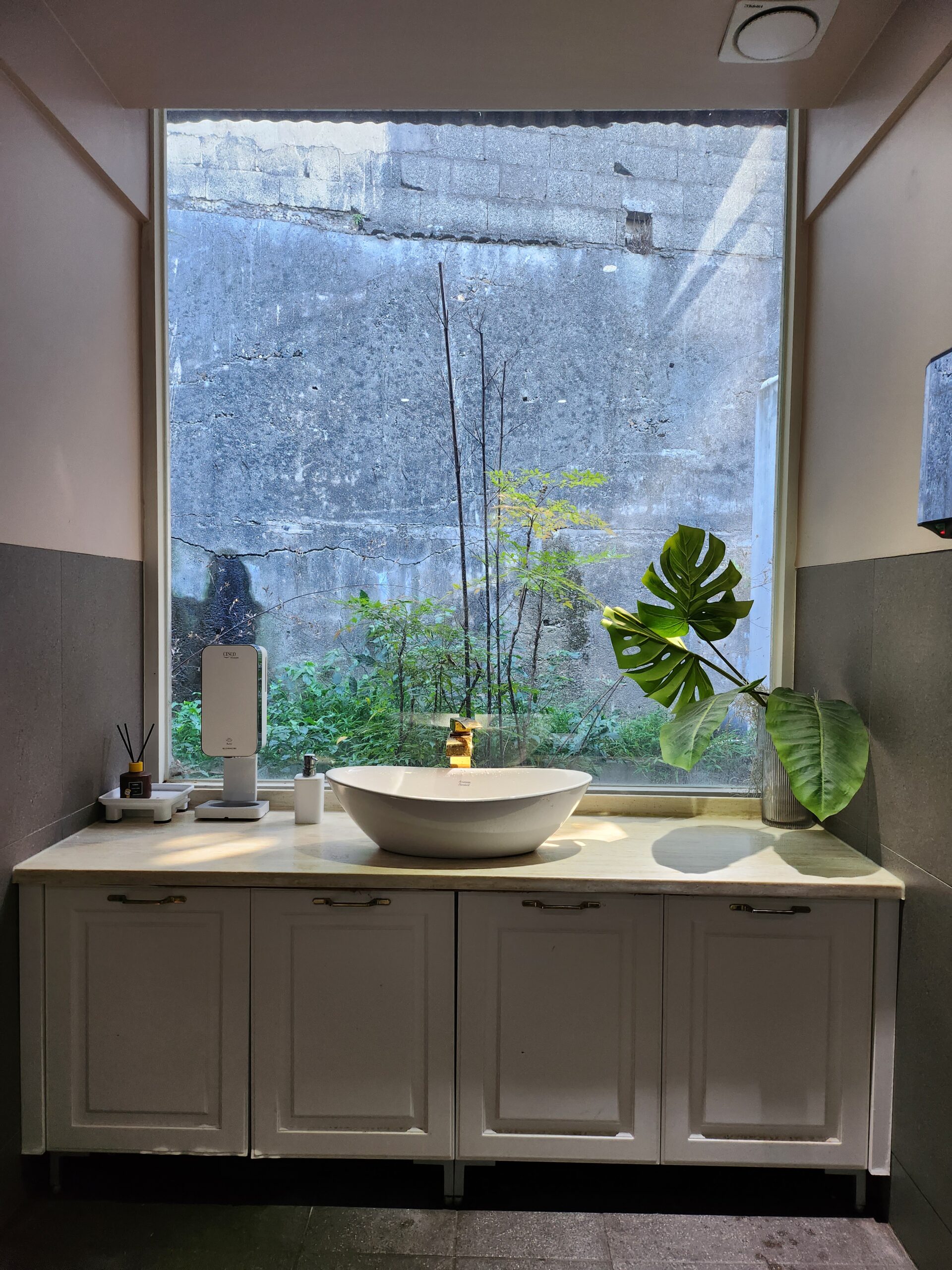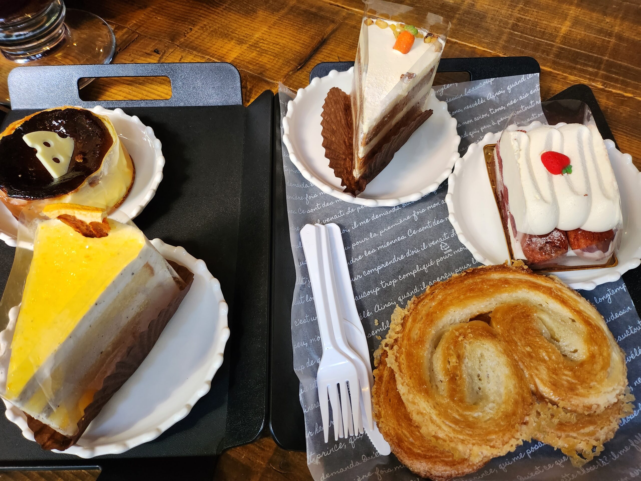 The café itself is contemporary and sleek, painted in simple gray tones with a clean, minimalist aesthetic. I absolutely loved the bathroom—a little indulgence in itself. The pastries and cakes were similar to what you’d find in Seoul, and the drinks were okay, comforting but nothing extraordinary. At the entrance, fans had left flowers and gifts for Jimin, adding a tender, celebratory touch to the space.